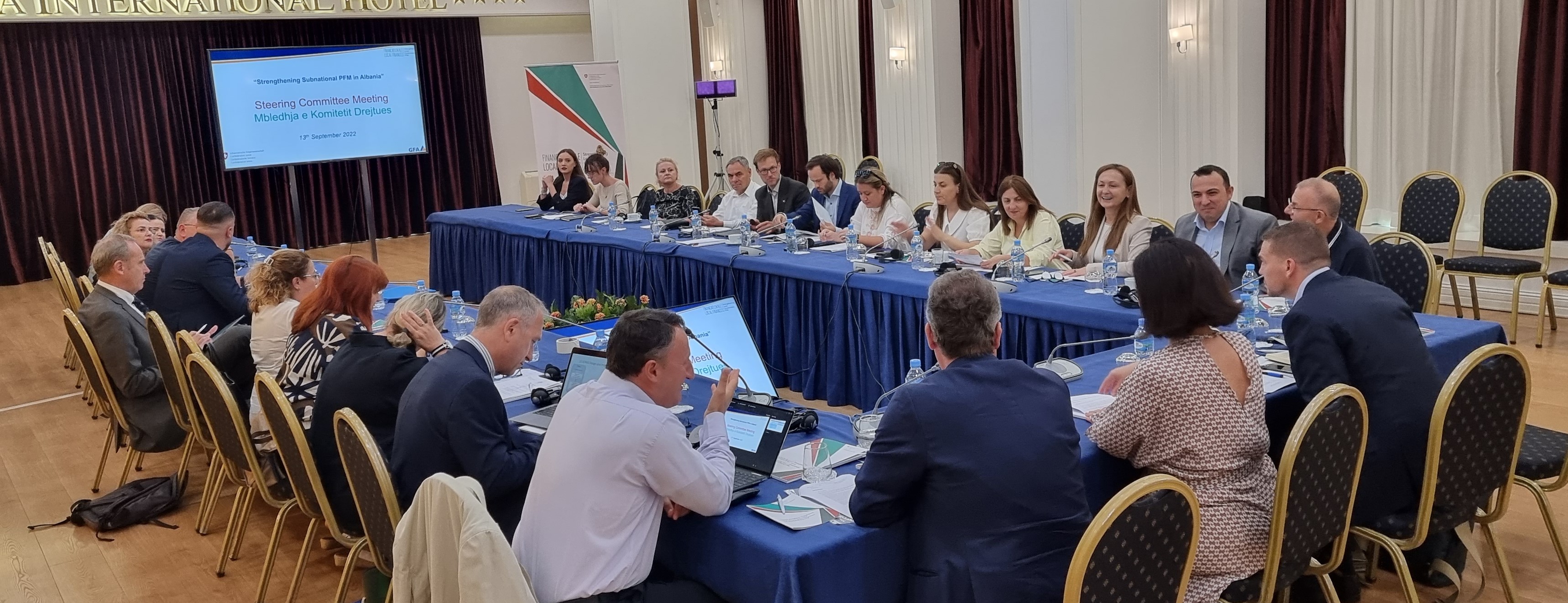 Më 13 Shtator 2022, u zhvillua Mbledhja e gjashtë e Komitetit Drejtues të Projektit “Financat Lokale”. Në takim morën pjesë titullarë të institucioneve vendore përfaqësues të bashkive, Shoqatës së Bashkive për Autonomi Vendore si dhe përfaqësues të Ministrisë së Financave dhe Ekonomisë, Agjensisë për Mbështetjen e Vetëqeverisjes Vendore/MB dhe Shkollës së Administratës Publike (ASPA). Mbledhja u bashkëdrejtua nga përfaqësues të Qeverisë Zvicerane/SECO dhe Ministrisë së Financave dhe Ekonomisë së Shqipërisë. Ekipi i Projektit prezantoi progresin e Projektit gjatë 6-mujorit të parë të vitit 2022, arritjet që nga fillimi i projektit si edhe objektivat e sfidat për periudhën në vazhdim. Mbështetur në një “qasje rajonale” të ofrimit të asistencës, ekipi i Projektit ka konsoliduar përpjekjet e veta për të mbështetur fuqizimin e kapaciteteve në të 61 bashkitë përmes një sërë mekanizmash dhe medotash inovative të ndarjes së njohurive ku bashkëpunimi i ngushtë me ASPA-n dhe përfundimi i platformës së komunikimit nëpërmjet vetë bashkive dhe bashkive e MFE, zë një vend të veçantë. Pjesëmarrësit vlerësuan rezultatet e arritura dhe shprehën angazhimin e tyre bashkëpunimin e ndërsjelltë për zbatimin e aktiviteteve në vijimësi, të rakorduara në përputhje me prioritetet dhe strategjinë e qeverisjes vendore për përmirësimin e menaxhimit të financave publike vendore.
