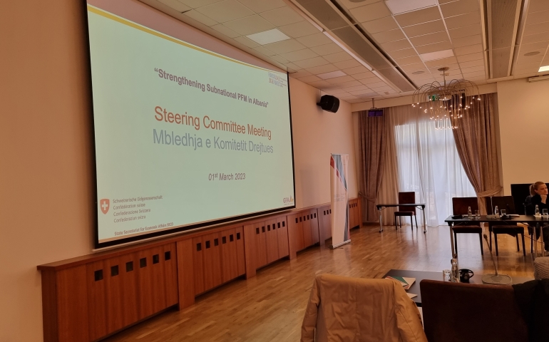 Para pak ditësh u zhvillua mbledhja e gjashtë e Komitetit Drejtues të Projektit “Financat Lokale”. Në takim morën pjesë titullarë të institucioneve vendore, përfaqësues të bashkive, Shoqatës së Bashkive për Autonomi Vendore si dhe përfaqësues të Ministrisë së Financave dhe Ekonomisë, Agjensisë për Mbështetjen e Vetëqeverisjes Vendore/MB dhe Shkollës së Administratës Publike (ASPA). Mbledhja u bashkëdrejtua nga përfaqësues të Qeverisë Zvicerane/SECO (z. Patrik Meier) dhe Ministrisë së Financave dhe Ekonomisë së Shqipërisë (zv. Ministre znj. Adela Xhemali). Ekipi i Projektit prezantoi progresin e Projektit gjatë 6-mujorit të dytë të vitit 2022, arritjet që nga fillimi i projektit si edhe objektivat e sfidat për periudhën në vazhdim. Kjo fazë përkon me zgjerimin e shtrirjes së projektit në të gjitha 61 bashkitë, mbështetur në një “qasje rajonale” të ofrimit të asistencës. Ekipi i Projektit ka konsoliduar përpjekjet e veta për të mbështetur fuqizimin e kapaciteteve të NJVV-ve përmes një sërë mekanizmash dhe medotash inovative të ndarjes së njohurive ku bashkëpunimi i ngushtë me ASPA-n zë një vend të veçantë. Pjesëmarrësit vlerësuan rezultatet e arritura dhe shprehën angazhimin e tyre në bashkëpunimin e ndërsjelltë për zbatimin e aktiviteteve në vijimësi, të rakorduara në përputhje me prioritetet dhe strategjinë e qeverisjes vendore për përmirësimin e menaxhimit të financave publike vendore.